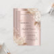 En modern, chic och glamourös inbjudan med glitterdropar och boho-blommor på en rose gold-bakgrund.