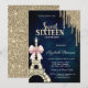 Glitter Drips,Eiffel Tower Bow Navy Blue Sweet 16 Inbjudningar