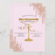 Elegant rosa guldglitter dropar och vinglas på rosa bakgrund. Vacker inbjudan som kan anpassas med ditt namn. Välj "anpassa"-knappen för att ändra teckensnittsstil, färg och storlek.