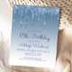 Det här trendigets 18:e födelsedagsinbjudan har en glatt blå faux glitter drop gräns och bergrum bakgrund. Orden "18:e födelsedag" och hedersgästens namn visas i handskriftsskript i avslappnad med resten av anpassadet i blått sans serif-teckensnitt.