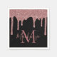 Svarta Ro-Glitter driver Pappra Napkins från Mode Monogram med ditt monogram och namn och vår chic, trendig, faux Guld ro/guld rosa droppar mot modern svart bakgrund. Perfekt till nästa party. Designad av Cedar och String; kontakta oss på cedarandstring@gmail.com om du behöver hjälp eller matchande artiklar.