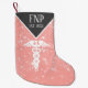 Julstrumpan för rosa glitter för fauxen för sjuksköterskapraktikercaduceusen kommer den små med "FNP" och beställnings- högskolastudentenår på båda sidor. Strumpan är designad med sparkles för fauxen för trendigrodnaden rosa och vitcaduceussymbol på centrera. Kritisera grå färgabstrakt på övreområde med ockupationtitel och år.