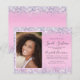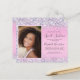 Budgetvänlig söt, glamorös och gigantisk söt 16 födelsedagsfest inbjudan med glatt holografisk lila, rosa och silver faux glitter konetti längs gräns på en rosa bakgrund, hennes foto och "Sweet sixteen" och hennes namn i ett mjukt grått-trendig-skript.