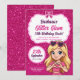 Firar i att blända stil med den här glam rosa Glitter Glam-födelsedagsfesten. Den här inbjudan är en glitter-bakgrund, hjärtformade solglasögon och en söt tecknad flicka i rosa. Den är perfekt för att interpolera flickor som kärlek glam och fantastisk sak. Anpassa enkelt informationen om namn, ålder, datum och party.