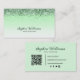 Grönt glitter med vita gnistor över vit bakgrund med QR-kod och medieikoner i social