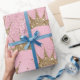 Glitter Guld Krona vid Rosa Glitter Presentpapper