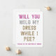 Föreslå för brudens sida med det glamorösa och mousserande kortet som säger: "HÅLL DU MIN DRESS MEDAN JAG PEE? VARA MIN MATRON AV HONOR." Anpassa med ett uppriktigt budskap på baksidan. Faux Rosa, silver och guld glitter trycks platt. Opt för en tarmform eller texturerad papper för att göra extra speciellt för dina flickor:)