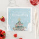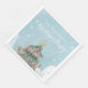 De här färgstarka och fjällande anpassningsbarna jul eller julfest napkins har en snöscen med ett vackert dekorerat Julgran mellan två backe i snö. Snöflingor faller från himlar, över en mjuk blå bakgrund. Backe i snö accentueras med faux silver glitter och dekorationerna och prydnadsämnena vid träd accentueras med faux guld glitter.