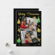 Den här designen har en blyg grönt och guld övertoning Julgran, jolly löv, jul boll och snöflingor med en sjudande text "God jul" med två foton som du kan välja mellan. Det här kortet är perfektens val att sprida glädje denna jul! Anpassa den utan problem.