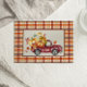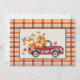 Kort för hälsning av thanksgiving med vintage Red lastbil fylld med fallpumpor på en fallskärm. Lägg till ditt eget meddelande längst bak.