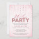 Den här fina födelsedagsfestinkvitationen från The Spotted Olive™ har en fin, mjuk rosa bakgrund med en bild av glittrande ädelstenar och orden "21 Again Party" stilfullt satta med ordet "Party" utfyllt med en bild av rosa glitter. OBS: DENNA DESIGN HAR ENDAST EN UTTRYCKT BILD AV GLITTER; DET FÖREKOMMER INGET FYSISKT GLITTER SOM ANVÄNDS ELLER INGÅR; DET FINS INGA UTSMYCKNINGAR.