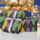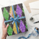 Lägg dina Mardi Gras-presenter med det här fina glitter-utseendet Mardi Gras harlequin-presentpresentfigurationen! Gnistra glitter ser utskriven färg av lila, grönt och gult guld för med sig charm till vilken gåva som helst, samtidigt som mikroplaster hålls borta från miljön!