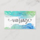 Den svarta texten i Massage-typografin finns på en ljusstark Grönt Blå turkos konstnärliga abstrakt, modern populär, vacker, fängslande bakgrund.