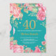40th födelsedaginbjudan för blommigt för kvinnor. Botanisk blom- blomma för vattenfärg. Guld- glitter. Bakgrund för krickaAquaturkos. Rosa pionblommigtblommor. Vuxen födelsedag. Behaga klickar "skräddarsy den" knäppas och använder vårt designverktyg för att ändra denna mall för mer ytterligare customization.