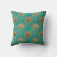 Söt dekorativ kudde har guld glitter-fågelfjädrar i mönster på akvatisk bakgrund.