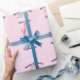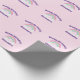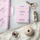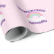 Den här söta, anpassningsbar presenten som omsluter papprare har en mjuk, rosa färgad bakgrund. En faux-, pastellbåge i färgad glitter stil med moln rullas över innerskiktet papprare. Uttrycket"Grattis på födelsedagen" skrivs ut ovanför regnbågen i ett typsnitt med vit lila och ett exempel med namn som skrivs ut under regnbågen i ett motsvarande typsnitt för lila. Du kan anpassa både meddelandet och namn så att du kan inkludera ditt eget namn- och anpassningsbar-meddelande eller din egen offert.