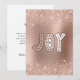 Sämre glitter gräns, överst och grund på vårt ro-guld-gratulationskort för den metalliska julen. På kortets framsida finns en illustration av ord JOY i ro guld, rosa och blek i hand plockade. Exempel på text på baksidan av platta kort lyder: "Varm hjärtlig önskemål för ett mycket God jul och ett nytt år fyllt med kärlek, skratt och magiskt äventyr." Du kan ändra exemplet namnteckning namn om du vill att namn-texten ska namnteckning eller tas bort för att du ska kunna skriva din egen.