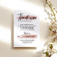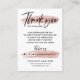 Dra in dessa lyxkort i din beställning för att säga ett tack från extra till din kund och ge om ett intryck av professionell till ditt småföretag eller tjusiga butiker. Ett tackbrev till bran för inköp kommer inte bara att uppskatta deras förtroende för dig, utan kommer att ge dem tillbaka för mer! Den här designen innehåller ett svart "tack" i fet stil med skript som skrivs mot ett penseldrag från glitter ro guld (tryckt effekt). Innehåller tre social-medieikoner (löstagbara) och ett fält för ditt användarnamn, din kontakt och ditt personliga meddelande med rabattkod. Du kan enkelt lägga till QR CODE på baksidan.