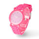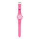 Den här klockan har ett viltband för rosa i glitter med en rosa färgad ansikte. Siffrorna är en mall och kan tas bort genom att välja "Anpassning".