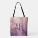 Med en sparsam bokeh glitter-effekt, plum, rosa, lila kräm personlig initialer och namn. En idealisk födelsedag, jul, tack, studenten, tack vare en ge gåva.