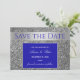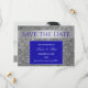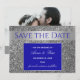 Lyxigt, chic, glitter silver och kunglig blå bröllopsinbjudan med foto och modernt kalligrafiskript.