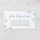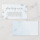 Uppmuntra dina gäster att sina kulinariska ägodelar med möhippans visitkort. "Ta med en recept" i chicens skript, omgiven av faux silver glitter snöflingor, tillför lite elegans till din händelse. Den blå bakgrunden för pastellerna binder ihop allt.