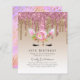 *** OBS! MATT ÄR PAPPERT LJUS - VÄLJ SEMI-GLOS FÖR ETT THICKER-AVSLUTA ***Flickor 13:e födelsedagsinbjudan med encorn ansikte, sparkles, glitter och folie (inte äkta glitter eller folie) i rosa, guld, lila, lilac-skuggor. Kontakta Designer LeahG om du vill matcha redigering av partyware och anpassningsbar.