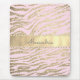 En ombre guld glittery zebra tryck på en rosa bakgrund tillsammans med ett glansigt, shimmery-band med ett pärlhalsband gräns där du kan anpassa det. chic för glam-trendig.