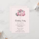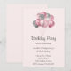 Inbjudan till födelsedagsfest med en illustration av en bukett ballonger i rosa och silvergrå färger.