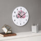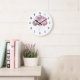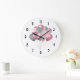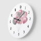 En klocka med en illustration av ett gäng ballonger i rosa och silver grått färg.