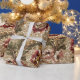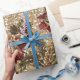 Sparkly röda blommor & gröntlöv mot en nätt guld- brun bakgrund