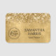 Den glupskt faux-glatta guld-glitter högdagrar på kant överst över en faux metallisk golden foil. Lägg till en medarbetare namn, rubrik eller annan logotyp och en företagstext. Glitter och folie skapas med digitalgrafik som skriver ut som ditt foto på namn bricka.
