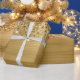 Bakgrunden är stor faux guld glitter och faux borstad metall golden foil. Den giglila glam från glitter skrivs ut som ett foto på presentfigurationen. Dekorativ anpassningsbar-presentfigursättning för dig.