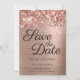 Skapa din egen moderna stil bröllop spara datum. Faux sparkly ro guld glitter översta kant parad med en rosa och ro guld ombre borstad metall folie. Hela struktur i i form av skal, gnistra, metall och glitter skapas med en tryckt digital grafisk bild. Teckensnittet stil och färg kan anpassas.