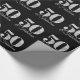 En 50 & Fabulous-typografi med silvery-grått glitter och folie på svart färg-inslagande papper. Den glatta glitter och folie är skapat med digitalgrafik som skrivs ut som ett foto. Det kommer inte att finnas något egentligt glitter som är fastlimmat på denna pappra produkt. Anpassa färg i skuggbilden inslag bakom digitalgrafiken. Behålla eller radering av extra gnistra-grafik. Den svarta bakgrunden färg är anpassade.