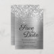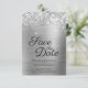 Skapa din egen moderna stil bröllop spara datum. Faux sparkly silver glitter top kant parad med en silvery grått ombre borstad metall folie. Hela struktur i i form av skal, gnistra, metall och glitter skapas med en tryckt digital grafisk bild. Teckensnittet stil och färg kan anpassas.
