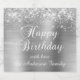 Prästermärken för Grattis på födelsedagen-kalligrafi för vin för en speciell gåva till en medarbetare i finare. Faux sparkly silver glitter överst och grund kant över en faux silvery grått rostfritt stål borstad metallstomme. Färg i den gammaldags skripttextbilden kan ändras. Den största färgen i denna gigantiska utformning är silver, grått och vitt.