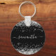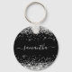 Den glatt faux-högdagern silver glitter på översta kant och grund på ett anpassade med solid bakgrund, färg svart. Öka det storleka teckensnittet efter behov för kortare namn. Skapa en egen nyckelkedja för medarbetare i personligen. Lägg till en logotyp på baksidan.