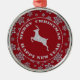 Den söt helgdag har ett silver faux glitter-snöflingor gräns. Den röda mittpunkten har en faux glitter renbild i mitten av den böjda texten som säger God jul och Gott nytt år. Baksidan av prydnadsföremålet har samma snöflake på röd gräns och mitt, men ställe i hjort är er anpassningsbar text. *Observera att bilden är utskriven och inte innehåller något egentligt glitter.*