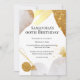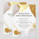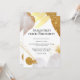 En mångsidig och lätt att anpassa design med glänsande abstrakta former i guld och pastell elfenbensrosa som har falska guldfläckar och glitter utspridda över det. En livfull falsk guldvattenfärgspenseldrag visas längs den övre kanten och en geometrisk linje längs den nedre. Dessa moderna, trendiga och samtida inbjudningar är idealiska för milstolpe eller födelsedagsfester i alla åldrar; cocktail-, förlovnings-, bröllops- och middagsevenemang.