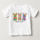 Den här söta påskt-shirten är det perfekta sättet att fira säsongen! Med en färgrik och lekfull design visar tröjan fyra livfulla kaniner, var och en med en unik färgsprut och detaljer i form av hjärta eller rosett. Med det glada meddelandet "Happy Easter" nedan är det ett roligt och festligt sätt för barn att vara med och fira. Tillverkad av mjuk, andningsbar tyget är den här vita t-shirten både bekväm och stilren för påskäggsjakt, familjesammanträffanden eller vardagsbruk under vårsäsongen. Ge ditt lilla barn en söt och glädjefull påsklook med den här förtjusande tröjan!