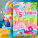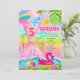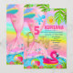 Glittrande glitter Mermaid fest rosa Inbjudan Hav ocean pool sol sommar fåglar strand boll flamingo Blad Vild guld Färgrik Palmblad.
