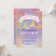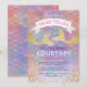 Pigigt magiska födelsedagsinbjudningar med en färgrik pastellfärgad havfru stjärt bakgrund, gnistrande guld och rosa glitter, sjögräs, två guldglittrande havfru stjärtar och en modern barnkalasmall som är lätt att anpassa.