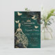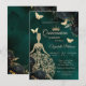 Guldglittrig tiara, klänning, fjärilar och gröna rosor på grön bakgrund. Bjud in gästerna att fira denna milstolpe med en design som speglar magin och glädjen i din quinceañera.