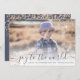 Modern guldglitter konfetti och enkel manus glädje för världen nytt år foto med blå typografi