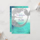 Glittrande, unik, söt, under havet, tealblå och silverfärgad mermaid Quinceanera 15-års födelsedagsinbjudan.