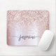 Roséguld glitter glam metallisk monogram namn skript anpassad personlig musmattor. Dessa mönster har ditt förnamn i en vacker handskriven stil med svansar i typsnitt på falsk roséguld metallisk folie med gnistrande glitterkant. Dessa är lätta att anpassa. Underbart stilrent och feminint present för födelsedag, mors dag, sweet sixteen födelsedag, bröllopsdusch och det är för tjejen som älskar unika, gnistrande och stilrena saker.