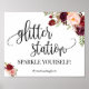 Glittrande stationsskylt marsala blomsterbröllopsf poster