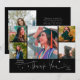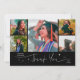 Modern och whimsisk examensannonserings fotokort med 5 bilder på framsidan och 1 på baksidan. Den handskrivna texten säger "Tack" med glittrande stjärnor. Lägg till examen namnet, informationen och meddelandet för att anpassa detta kort. Svart.