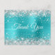 Glittrig Silver Turkos Blå Sweet 16 Tack Kort